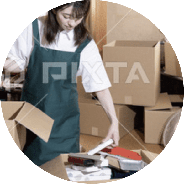 片付け・買取・処分に関わる法規制等の知識を基に ご依頼人の想いに寄り添い、思い出の品々を整理する という気持ちで作業にあたっています。
